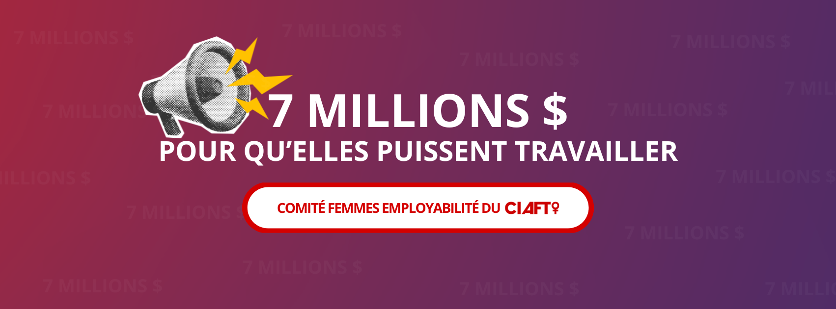 Dans ce contexte, le Comité Femmes Employabilité du CIAFT lance aujourd’hui une pétition pour exiger un financement à la mission globale à la hauteur de leur impact. 7 millions de dollars par année, une somme modeste à l’échelle de l’État, mais déterminante pour couvrir des frais essentiels non financés destinés à des besoins de base, ou pour développer des projets qui s’attaquent aux inégalités systémiques, pour des changements sociaux durables.